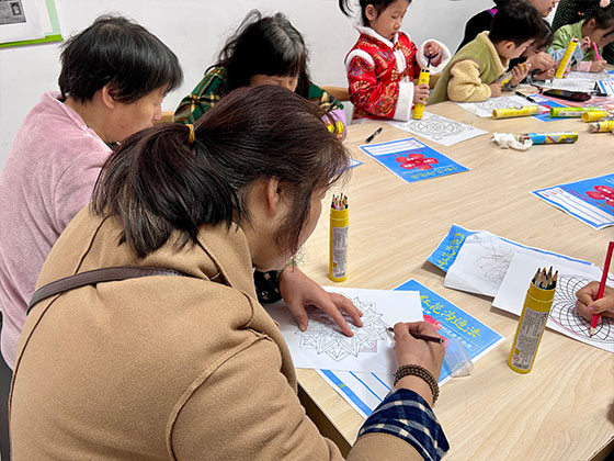 活动接近尾声时,“曼陀罗正念”环节为现场氛围注入了宁静与温暖。大家在余老师的引导下,带着对朋友、对未来人际关系的期待,亲手绘制专属曼陀罗图案,在专注的创作中梳理情绪,沉淀活动所学。