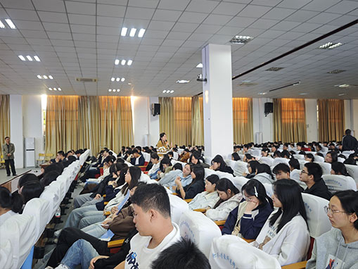在“路径搭建”环节,讲师详细介绍了“四步落地法”,包括环境调研、方向匹配、目标拆解与动态调整,帮助学生将“喜欢”转化为“可行”。现场还设置了“价值观投票”“潜在方向讨论”等互动环节,学生积极参与,气氛热烈。