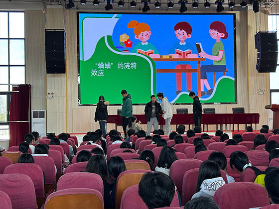 在“快问快答”环节,耿爽老师接连抛出“是否曾对朋友抱怨他人”等5个贴近学生生活的问题,现场举手反馈热烈,不少学生表示自己曾经历或见证过“背后蛐蛐”,瞬间拉近了讲座与学生的距离。随后的“情景再现”环节,老师通过四个典型案例,生动还原了校园里“背后蛐蛐”的常见场景,引发学生共鸣的同时,也引导大家思考这些行为背后的心理动机。