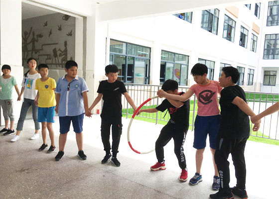 大家最爱的游戏是传递呼啦圈,同学们反馈说手拉手将呼啦圈传递下去的感觉,就好像是大家齐心协力在做着一件特别不容易的事情。当呼啦圈到达终点的时候,每个人的脸上都洋溢着满足的笑容。