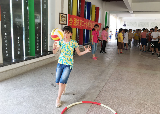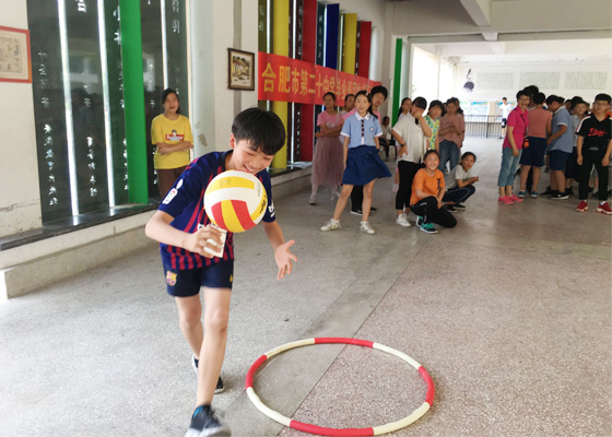 在报纸运球的活动中,两个班级自动成为对手,四人一组以报纸兜住排球,跑向终点再返回,接力进行。同学们摩拳擦掌,尽力在四人间形成配合,使排球能够又快又稳地前进。有时一不小心排球掉落,一整个班级的人都跟着着急跺脚。