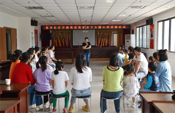 2019年9月28日上午,应高新区校外未成年人心理健康辅导站的邀请,国家二级心理咨询师,徽韵心理咨询部主任胡君玲老师,来到辖区的复兴社区,为社区的16个亲子家庭开展了一场主题为“我爱我家”的团体心理活动。