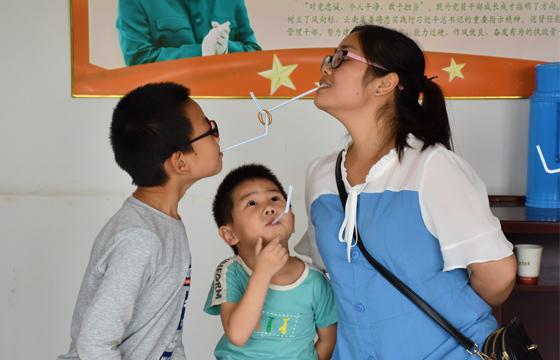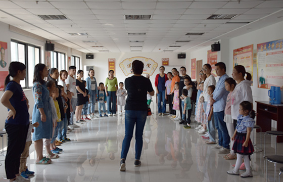 胡老师打量一眼场上的家长和小朋友:既然都互相不认识那就先从轻柔体操的活动开始吧,既可以活动活动身体,也可以让家长和小朋友感受到来自其他人的支持,快速的拉近彼此的距离;在接下来的游戏中,可不是只动动身体这么简单,需要同时动用大脑和嘴巴,既要细心也要耐心;朝夕相对的父母和孩子们,如果有一天你看不见了,你们还能找到彼此吗?在小蝌蚪找妈妈的游戏中,家长和孩子分别被蒙上眼罩,通过声音和触觉去寻找彼此,结果怎么样呢?父母们都正确的找到了自己的孩子,小朋友们呢倒是糊里糊涂的认了许多新的爸爸妈妈,所以在游戏结束后,胡老师给小朋友们布置了一个任务:晚上回去都一定要把自己爸爸妈妈的手和脚摸个遍!最后的抢凳子游戏,是所有活动中最容易惹哭小朋友的“高危”游戏,但在这次的活动中,好几个小朋友在输掉游戏后还是开心的扑倒爸妈的怀里,高高兴兴的继续为其他的小伙伴加油,这样的小朋友一定生长在一个很有智慧的家庭里吧。