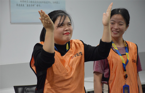 很多时候客服人员的工作压力从沟通中来,那我们的解决办法也到沟通中去寻求。胡老师用一个又一个小游戏,在帮助员工们释放压力的同时,也在用另一种方式告诉大家,沟通的方式并不只语言这一种,有时候我们可以用身体、有时候可以用眼神、你也可以自己发明一种别人听不懂的语言,用自己最独特的方式来诉说,我们可以在沟通中来积极的寻找乐趣,在工作中寻找乐趣。