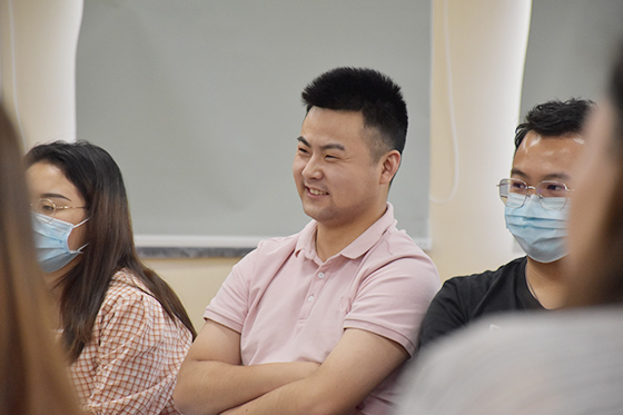 胡老师并不急于解释情绪管理是什么,也不着急回应学院们回答的是非对错。而是说起自己今天在课堂上遇到的一些小情况——课程开始前,投影和音响出现了问题,导致讲座的PPT无法播放、今天的课程也可能需要更费嗓子。在这样的情况下,可能有的人会出现焦急、愤怒的情绪,胡老师转过脸去问学员们:“你们能看到我现在有什么情绪变化吗?”
