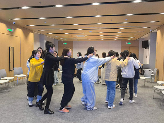 最后的“围圈共舞·心灵共鸣”将活动推向高潮。所有参与者手拉手围成圆圈,随着音乐自由舞动,在彼此的见证与陪伴中,用身体表达情绪,释放压力。许多员工表示:“在圆圈中感受到不被评判的安全感""原来放下苛责,身体可以如此自在。”