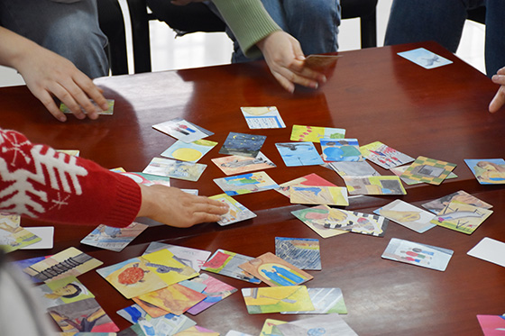随后进行第二轮的个人体验,王老师指导大家选取两张卡片,让大家根据卡片上的画面和文字进行自由联想。在王老师一步步的耐心引导和陪伴下,大家逐渐敞开心扉,在自我探索的过程中层层递进、不断深入,了解到内心世界的真实想法、释放了压抑许久的情绪。活动过程中,王老师还通过心理放松训练为大家缓解压力,平和心境。
