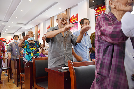 过程中,张老师介绍了食物与慢性疾病的关系,指出慢性疾病的发生主要与膳食不合理和活动不足有关,并向大家详细介绍了不同颜色食物对应的季节与内脏养生,让大家吃出好身体、吃出好心情,比如夏天多吃红色食物,补血养心,能帮助大家安神静气,保持愉快而稳定的心情。张老师还强调了运动对于身心健康的重要性,着重讲解了“甩手操”的作用和方法,并细致耐心地为大家做甩手操的动作示范。过程中,大家积极配合,随着老师的拍子一起做甩手操,感受运动带来的全身通畅的感觉,活动现场气氛十分热烈。